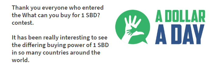@adollaraday - A Dollar A Day charitable giving project : What can you buy for 1 SBD?