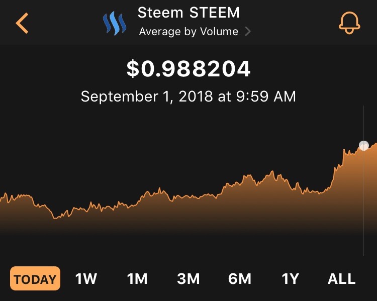 The price of STEEM at 10:00 A.M. was exactly $0.998204 on September 1st, 2018! Check out the chart here:
