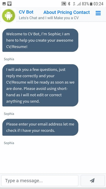 CV Bot is a bot that can chat with people asking them relevant information needed for a resume. At the end of the chat, they can preview how their resume will look using different templates and edit or download if satisfied.