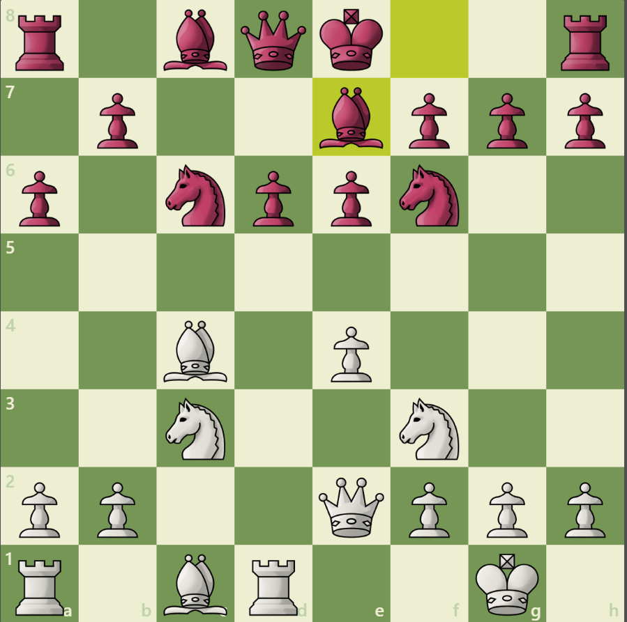 White opens up the queen on the e-file and regains the sacrificed pawn. Black cannot recapture the pawn because Ne4 will win the bishop, so White has a great position.