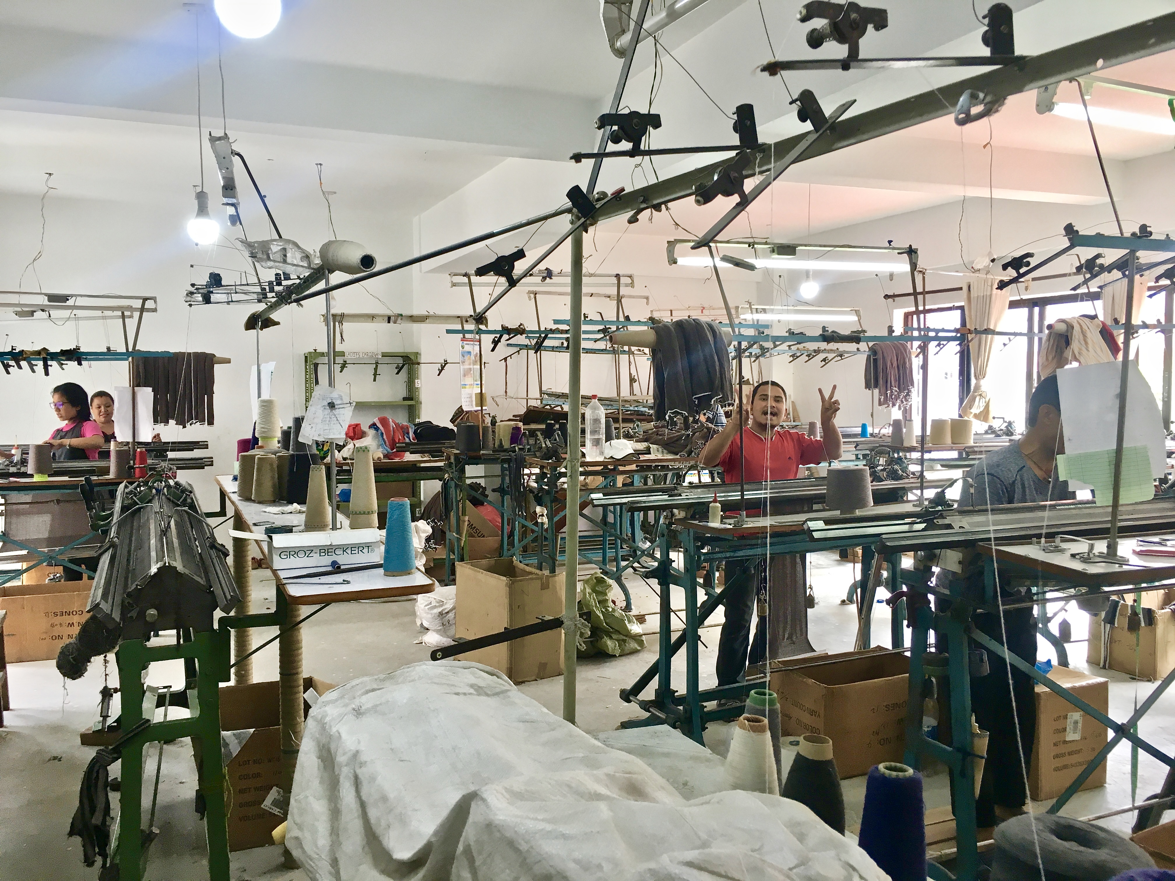 I visited this factory before purchasing a shipment of yak wool. Part of my process is to qualify my small suppliers and make sure I like how they do business. This was a small factory in an outer part of Kathmandu. People working on an optional day off, where the local transit was shut down. So they had come to work under their own steam. No dank small rooms, no pouring dye and acid into a local stream. Just small groups of people working on different tasks and chatting. Some were so eager to show me what they were working on that they let me try their machines.
