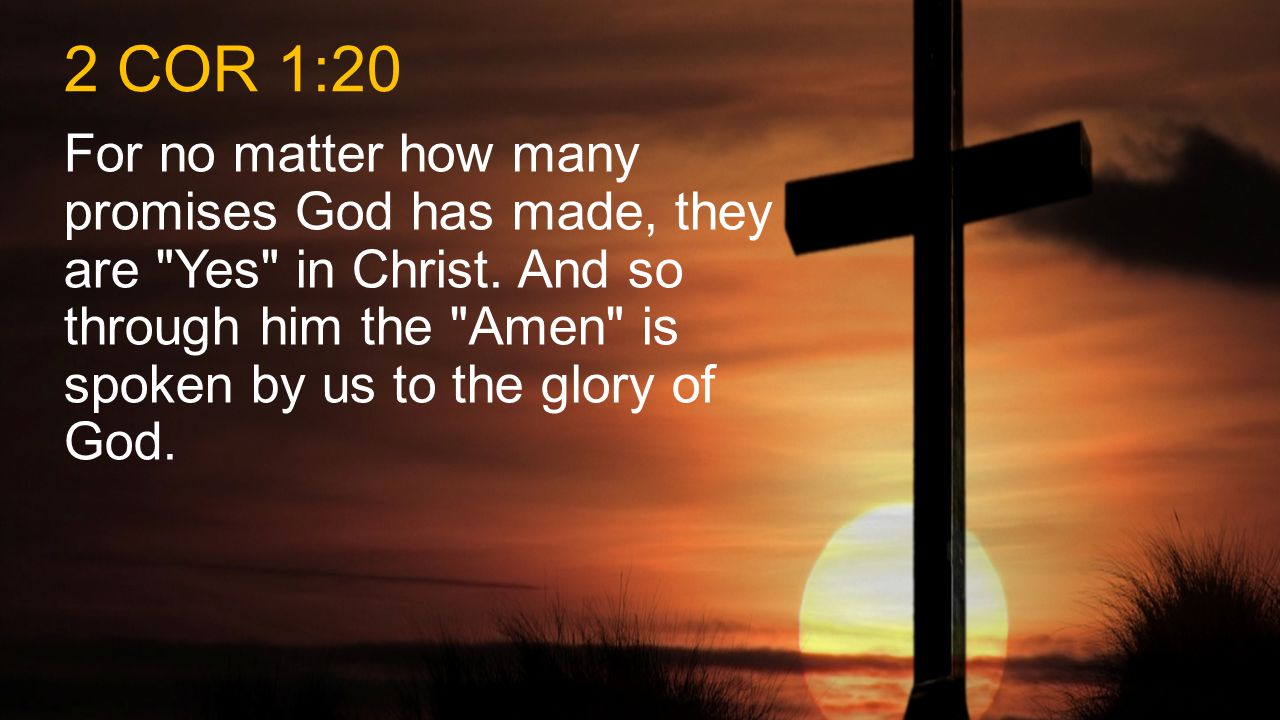 For as many as are the promises of God, in Christ they are [all answered] “Yes.” So through Him we say our “Amen” to the glory of God