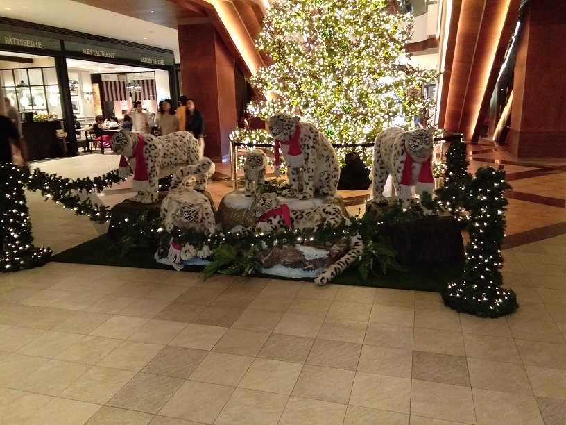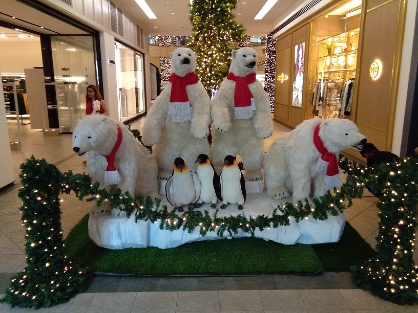 Viewing Christmas animal theme displays at the Power Plant Mall
