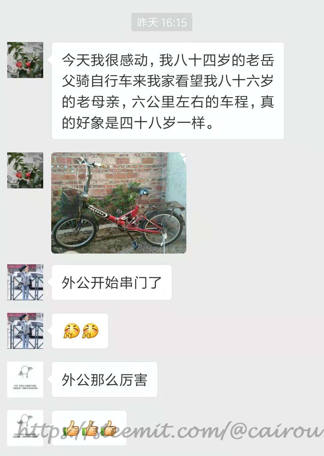 哈哈是自行车啦,大家都很感动于外公坚持到处活动,而不是选择闷在家里呢!