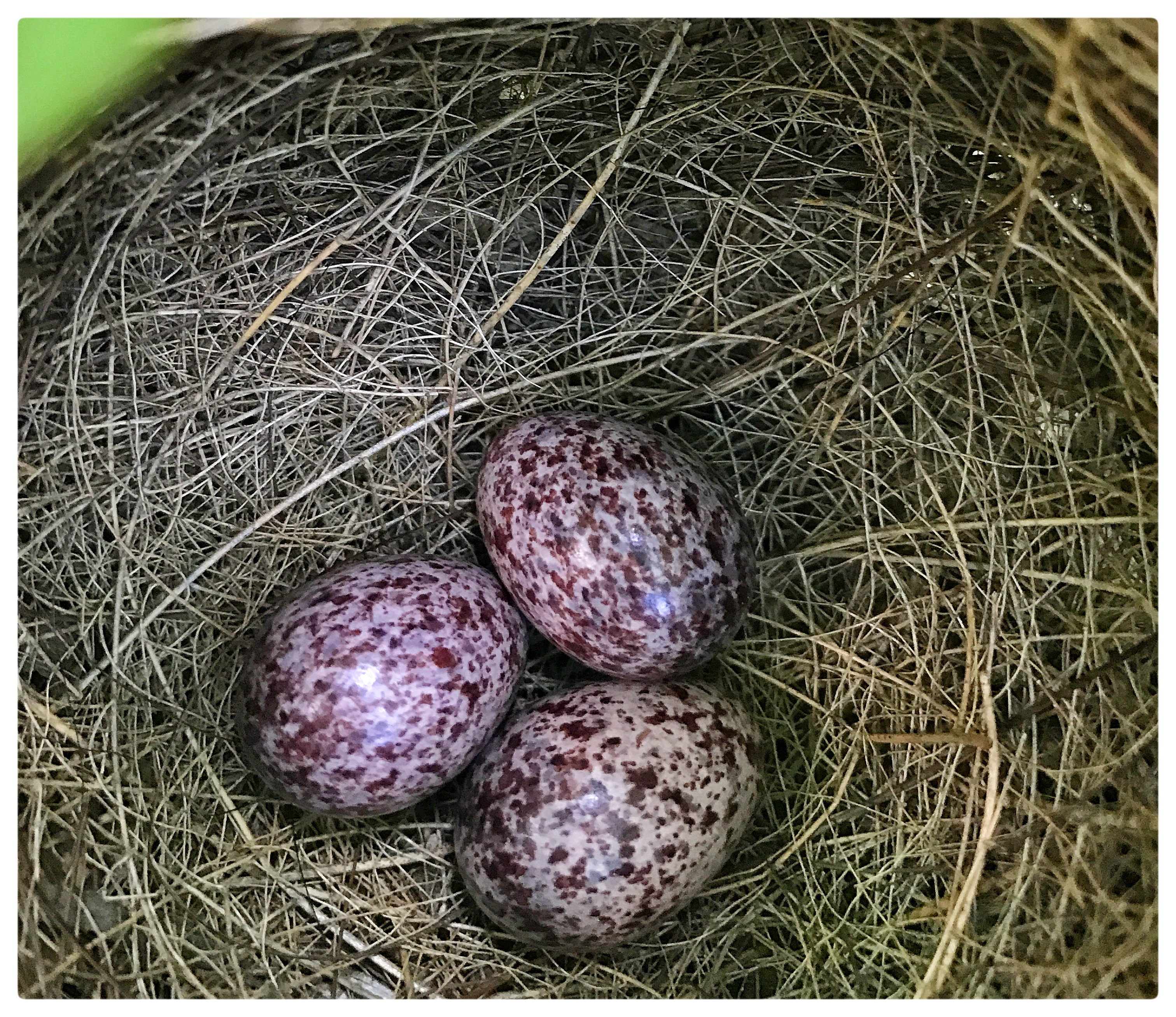 一天意外发现一棵不高的树枝上有个鸟窝,出于好奇就踮起脚伸头去看,发现碗形的窝里有3只鸟蛋。心想是什么鸟,筑巢这么低,想搞个明白。