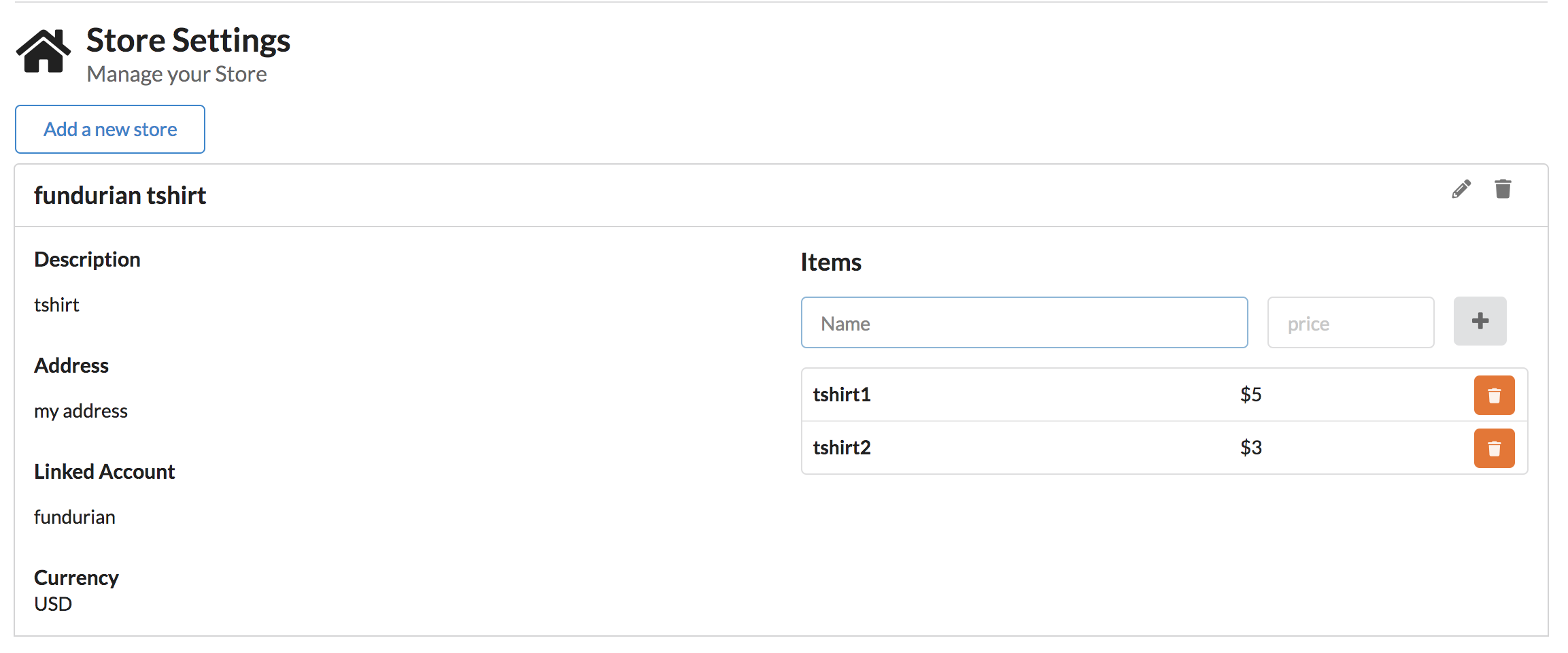 - Once the store are up, you can start adding item, such as tshirt 1 for $5, tshirt 2 for $3