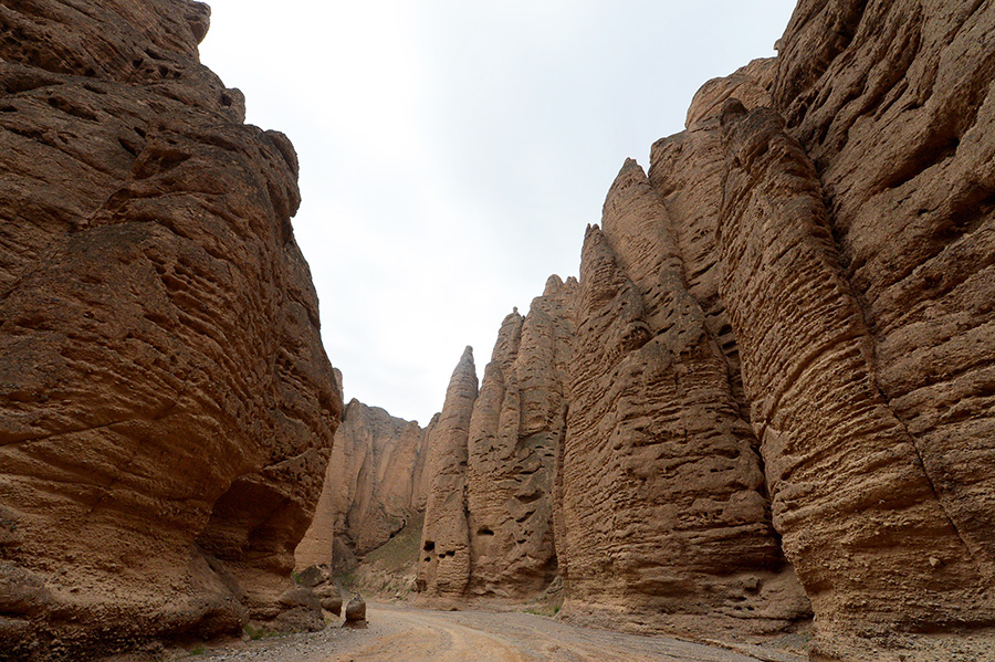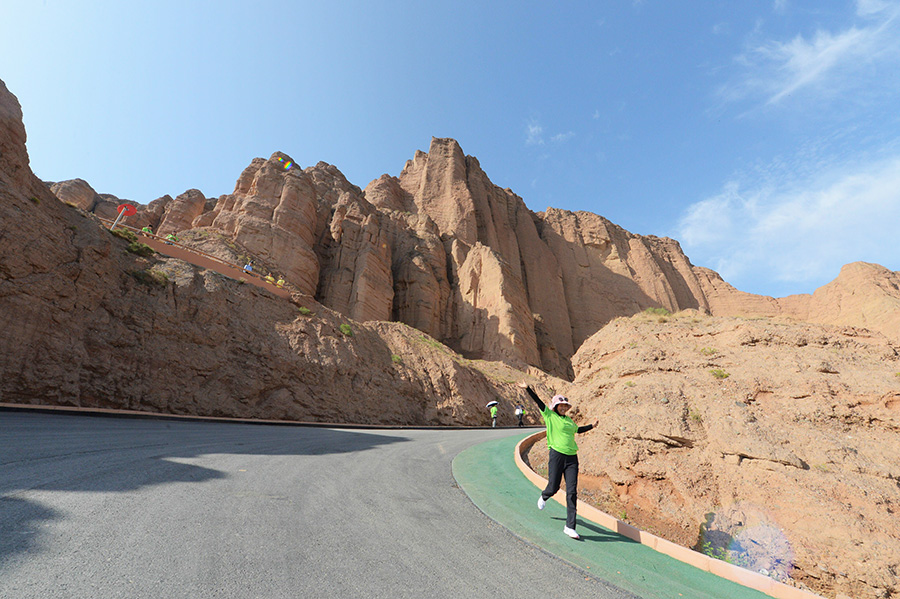 Photo taken on May 22, 2018, shows the scene of the Yellow River stone forest national geological park in Jingtai county, Gansu province. The landscape was formed due to collective forces of wind erosion, gravity collapse as well as the control of tectonic movements.