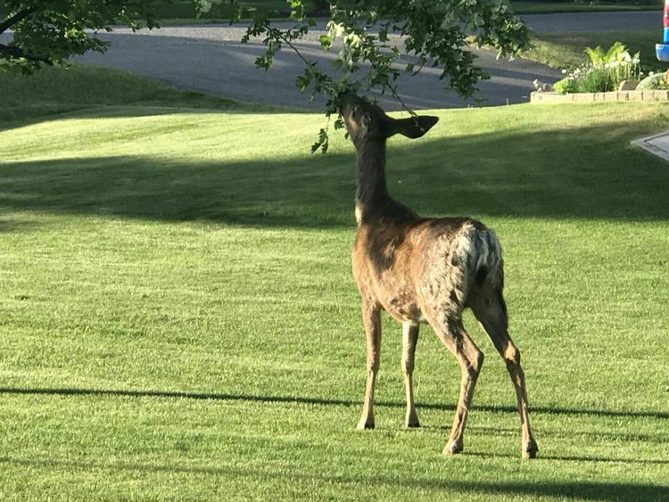 清晨跑步,和正在吃树叶的鹿偶遇。