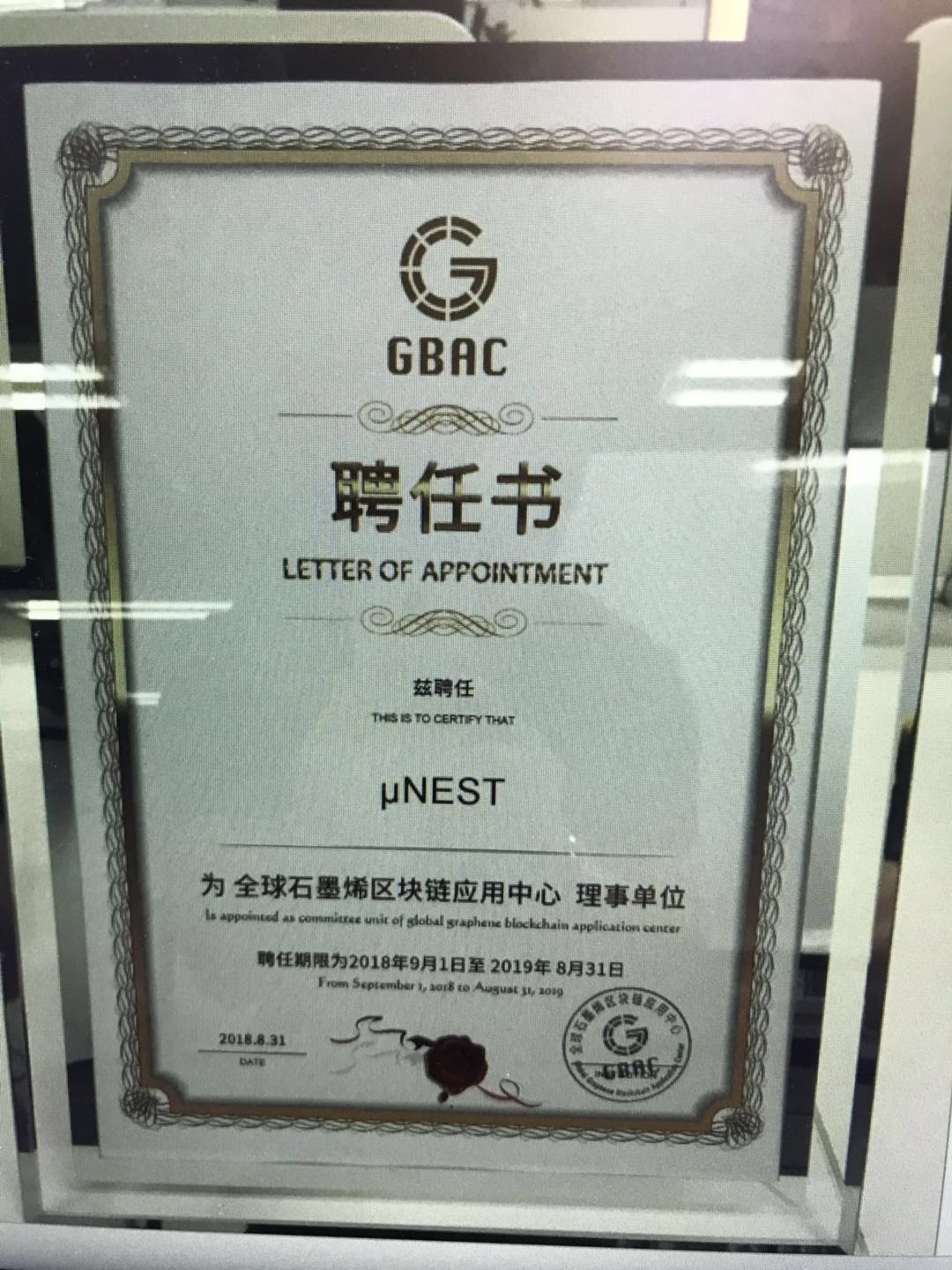 μNEST2018系列回顾(四)——μNEST受聘成为全球石墨烯区块链应用中心理事单位,创始人Neo MA任中心技术顾问