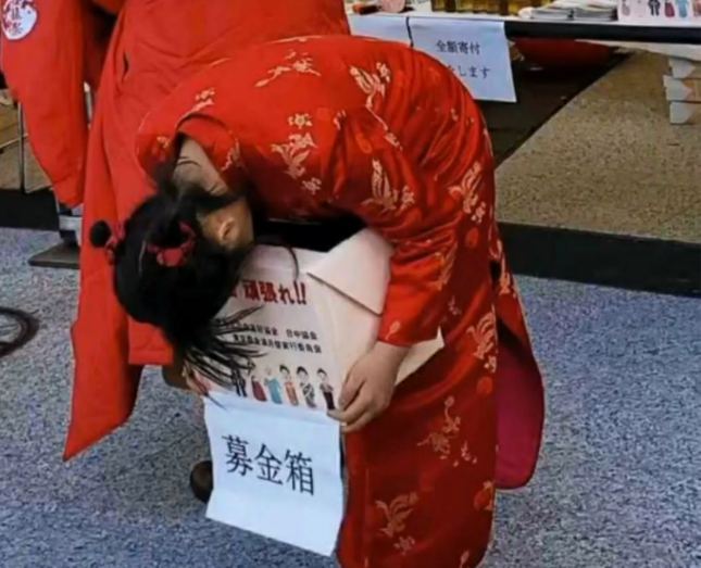 對每壹個捐款的人,女孩都會深深鞠躬表示感謝。