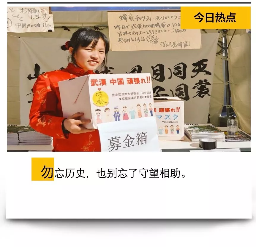 東京池袋西口公園的滿月祭燈會上,在主辦方特別設置的“支援武漢”展區,這名女孩和幾個同伴壹起,手捧著募捐箱,等待行人的駐足。