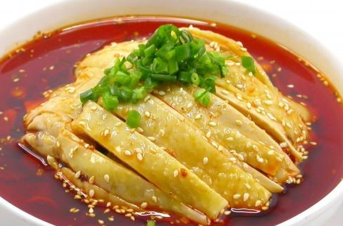 四川口水鸡可以不是简单的一道凉拌鸡肉。而是将优质的本地土鸡做成白切鸡,然后淋上精心炼制的辣椒油和料汁,最后顶上洒上芝麻或洒上花生米碎,口味非常别致,鲜香麻辣虽然做法简单却十分美味。