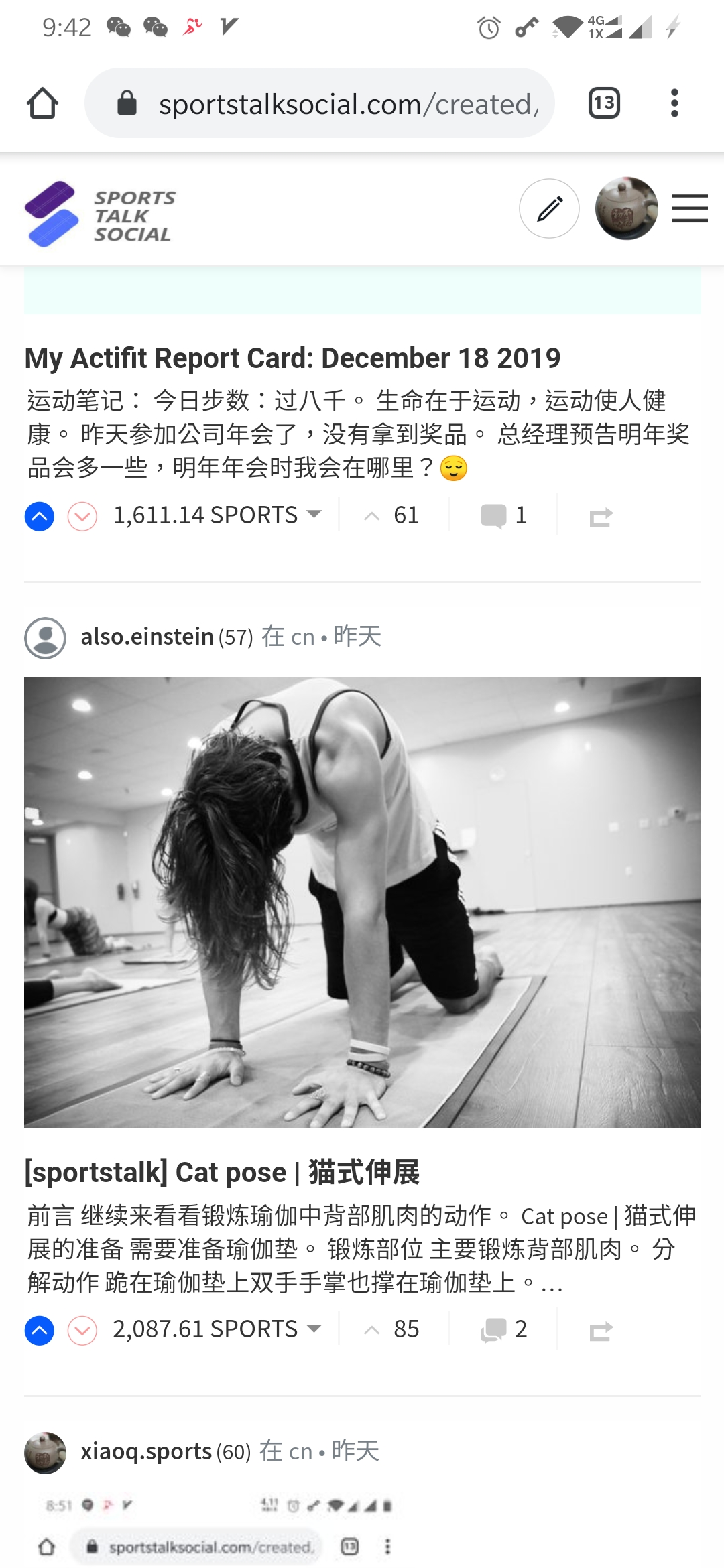 这个号在体育平台 www.sportstalksocial.com/ 已经锁仓了接近100万的体育币,之前也只是一直在自动点赞赚取运动币审查收益,并没有发帖子,现在加入了cn点赞团并且租了一些sp才发贴撸steem的点赞