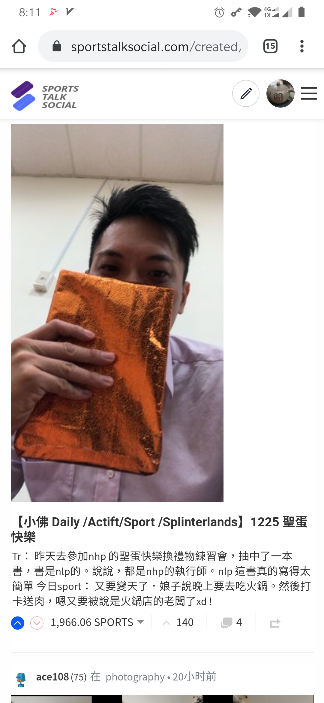 这个号在体育平台 www.sportstalksocial.com/ 已经锁仓了接近100万的体育币,之前也只是一直在自动点赞赚取运动币审查收益,并没有发帖子,现在加入了cn点赞团并且租了一些sp才发贴撸steem的点赞