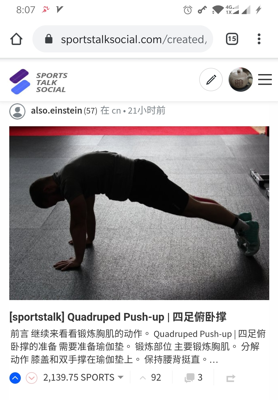 这个号在体育平台 www.sportstalksocial.com/ 已经锁仓了接近100万的体育币,之前也只是一直在自动点赞赚取运动币审查收益,并没有发帖子,现在加入了cn点赞团并且租了一些sp才发贴撸steem的点赞
