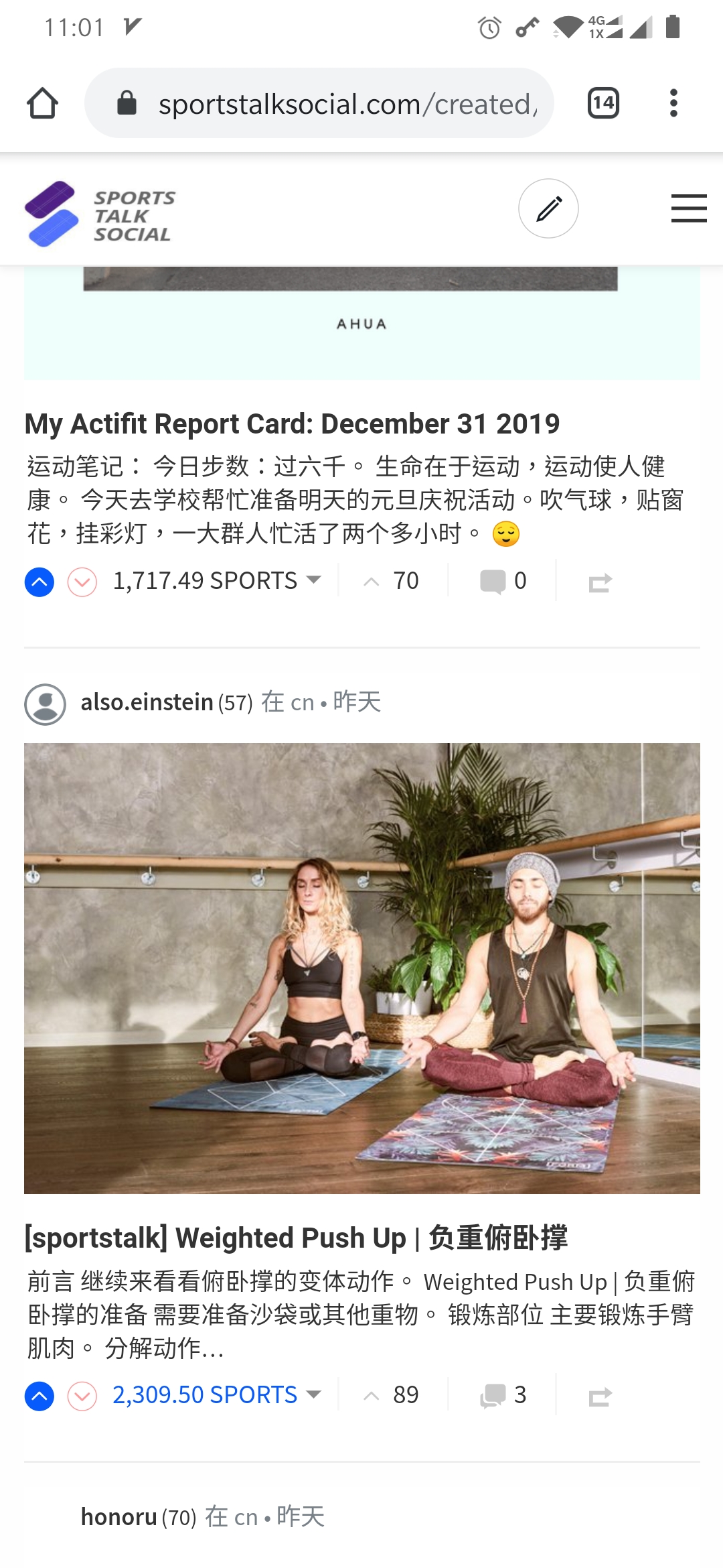 这个号在体育平台 www.sportstalksocial.com/ 已经锁仓了接近100万的体育币,之前也只是一直在自动点赞赚取运动币审查收益,并没有发帖子,现在加入了cn点赞团并且租了一些sp才发贴撸steem的点赞