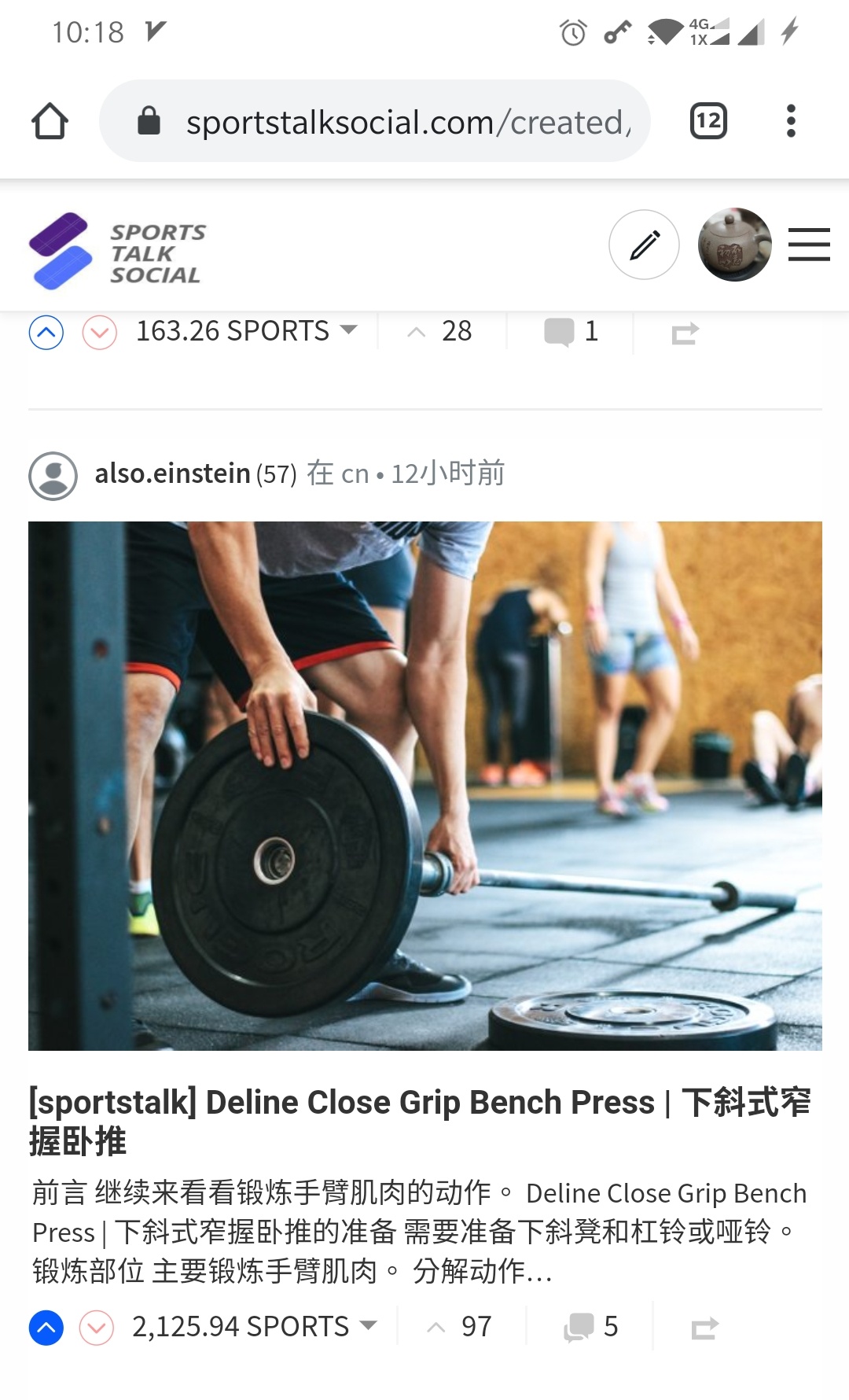 这个号在体育平台 www.sportstalksocial.com/ 已经锁仓了接近100万的体育币,之前也只是一直在自动点赞赚取运动币审查收益,并没有发帖子,现在加入了cn点赞团并且租了一些sp才发贴撸steem的点赞