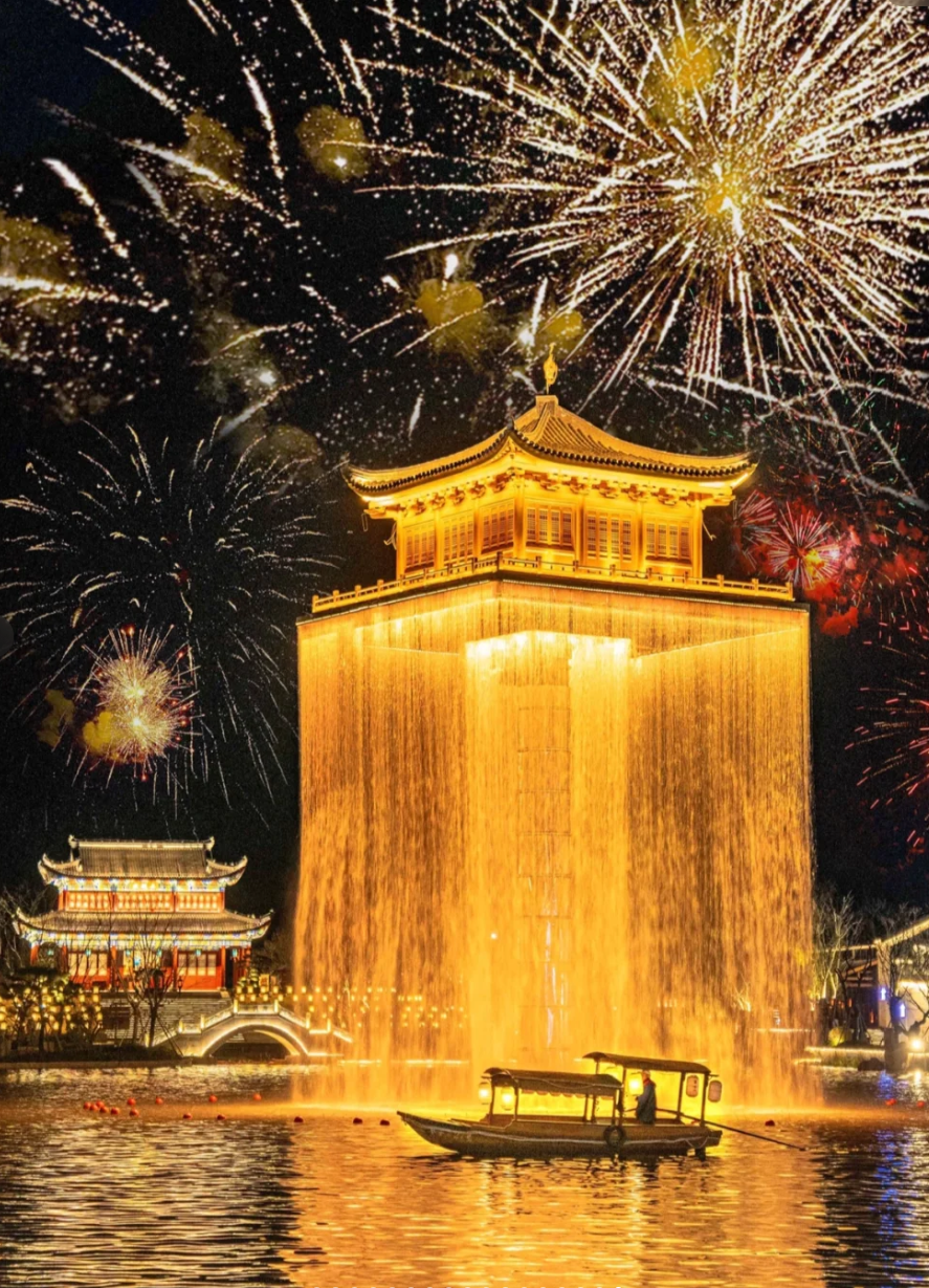 每到夜晚,金阁华灯初上,烟花璀璨,仿佛又一次回到大唐盛世!
