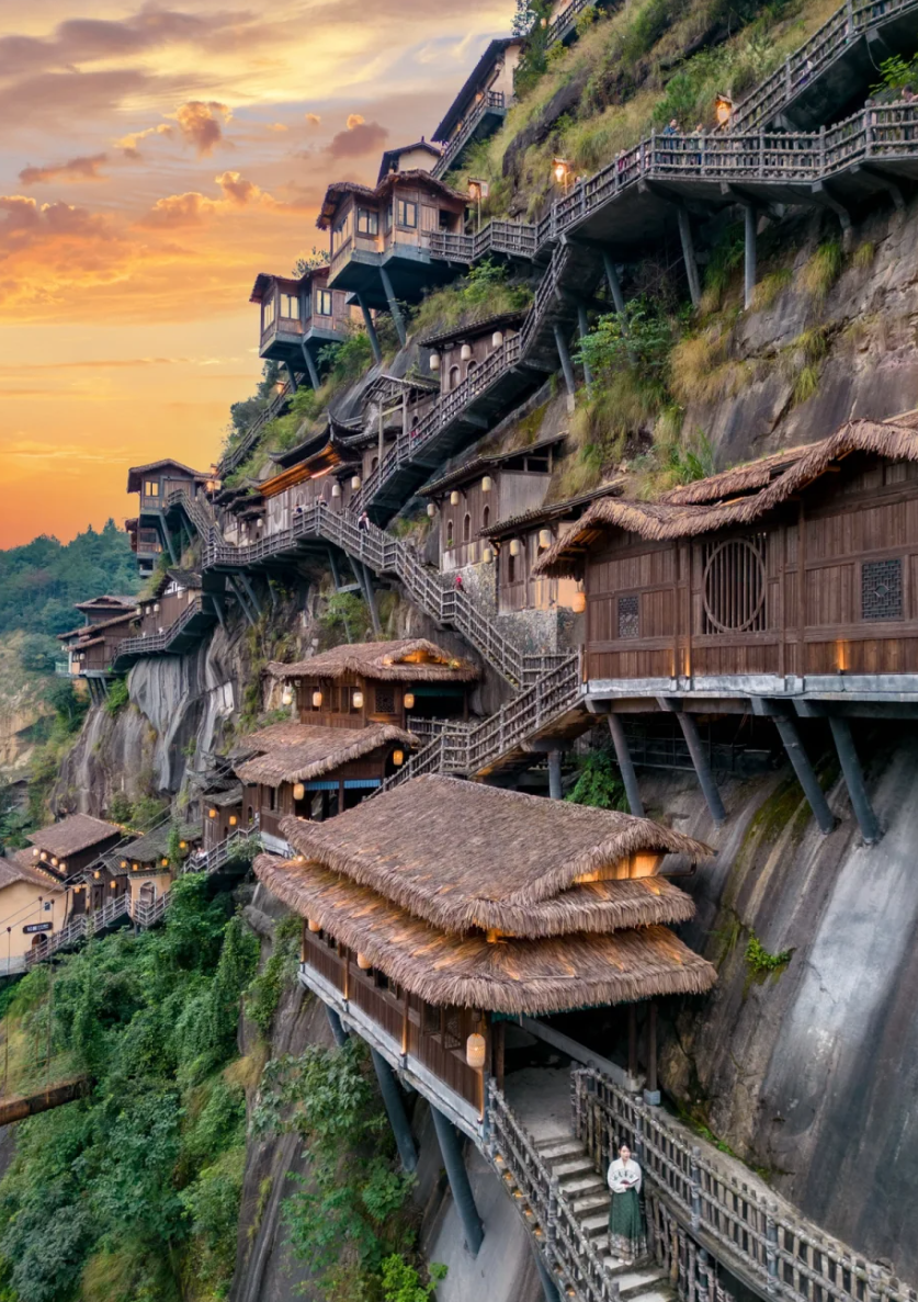 被这里的照片一眼震惊!建在悬崖之上的亭台楼阁,像极了苍兰诀里的仙侠世界