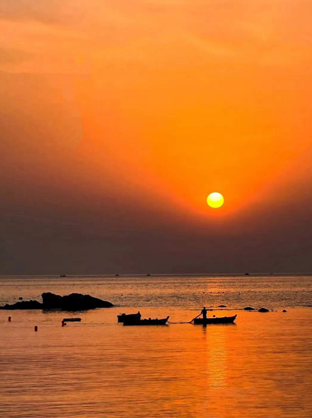 总要去威海看一场浪漫的日出吧,开始迎接美好的一天,朝霞映在海面上,希望这一刻的美好永远停留。