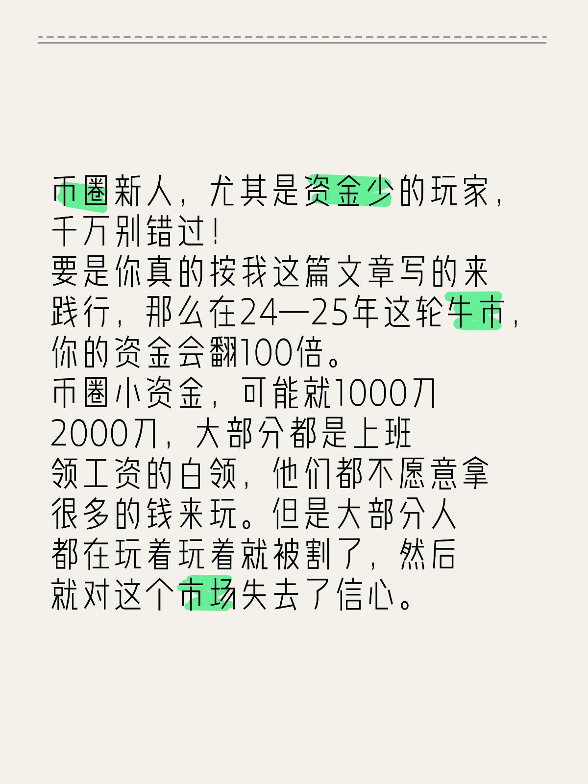 币圈新人,尤其是资金少的玩家,千万别错过!