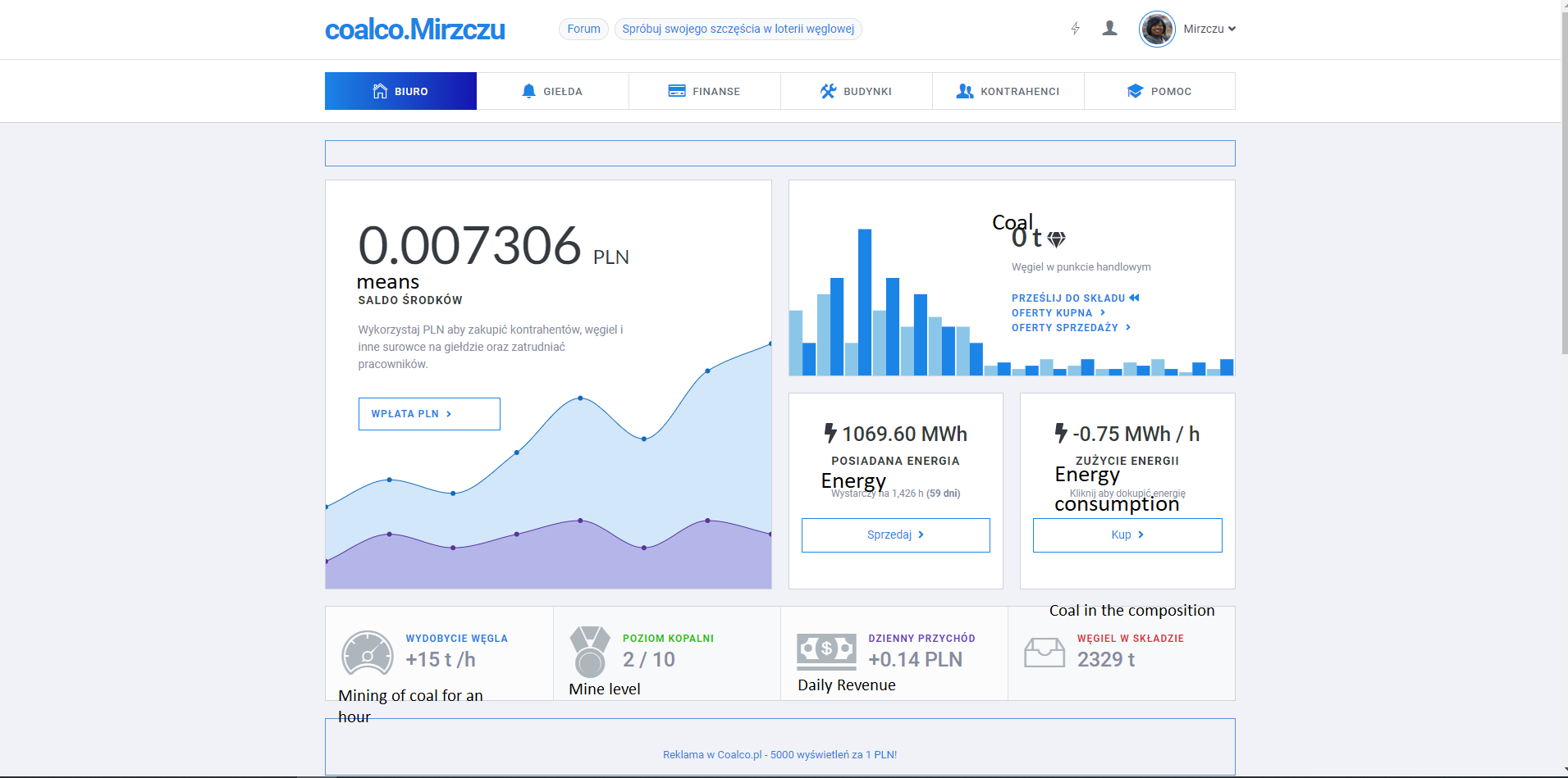 MY ENGLISH IS NOT THE BEST !!!! Hi, I would like to show you the service coalco.pl is. COALCO is the site on which we extract the Virtual Carbon for which we buy Energy that is needed to extract coal. We can upgrade our mine to larger levels. The 2nd level costs us 5ton Coal. We can buy mine upgrades, Other mines, Production, Buildings, Type Trade Department, Forwarding Szuszarnia, Laundry for the extracted coal. We can make BTC payment, BTC payment and PLN payment. There are 7 Stock Exchanges. Labor Exchange, the Power Exchange, the Coal Exchange, the Fuel Exchange, the Steel Gield, the Van Exchange and the Plastics Exchange. Earned money can be easily withdrawn to a bank account.///\///\//Cześć chciałbym pokazać wam serwis jakim jest coalco.pl . COALCO to strona na której wydobywamy Wirtualny Wegiel Za który kupujemy Energię która jest potrzebna do wydobywania węgla. Swoją kopalnię możemy ulepszać na większe poziomy . 2 Poziom kosztuje nas 5ton Węgla . Za wydobyty węgiel możemy kupić ulepszenia kopalni , Inne kopalnie , Produkcję , Budynki, Typu Dział handlowy, Spedycja Szuszarnia, Pralnia. Możemy Robić Wpłatę BTC wypłatę BTC i Wpłate PLN . Jest 7 Giełd. Giełda Pracy, Giełda Energii, Giełda Węgla , Giełda Paliwa , Gielda Stali,Giełda Furgonetek i Giełda Plastików. Zarobione pieniądze możemy łatwo wypłacić na konto bankowe.///\