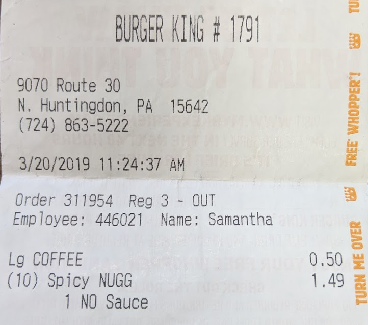 Lets now talk about the competition and why I decided to have this battle. If I'm going to have a breakfast sandwhich (which I do when travelling for work) I prefer Burger King (BK) over McDonalds. Theres two primary reason but this isn't about the sandwhich it's about the coffee. So my most pleasent surprise was when I stopped in and picked up a cup of coffee last week was the price! Fifty cents; What? are you kidding me, 1/2 the price of McDonalds this harkins back to the days of when you could buy your coffee our of a machine that dispensed the paper cup with a bonus game of poker on it for a potentially free cup of coffee.