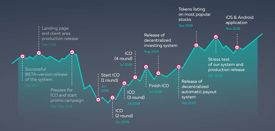 As a result of our ICO, we build a decentralized AI-based investment system with a transparent conditions and automatic payout which based on blockchain technology.