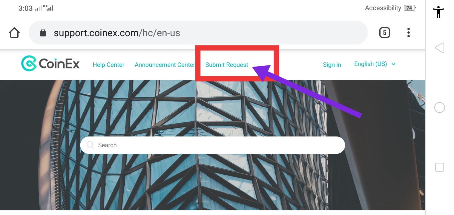 https://support.coinex.com/hc/en-us/requests/newWeb: Open CoinEx website[https://www.coinex.com]-[Help] at the lower right corner.