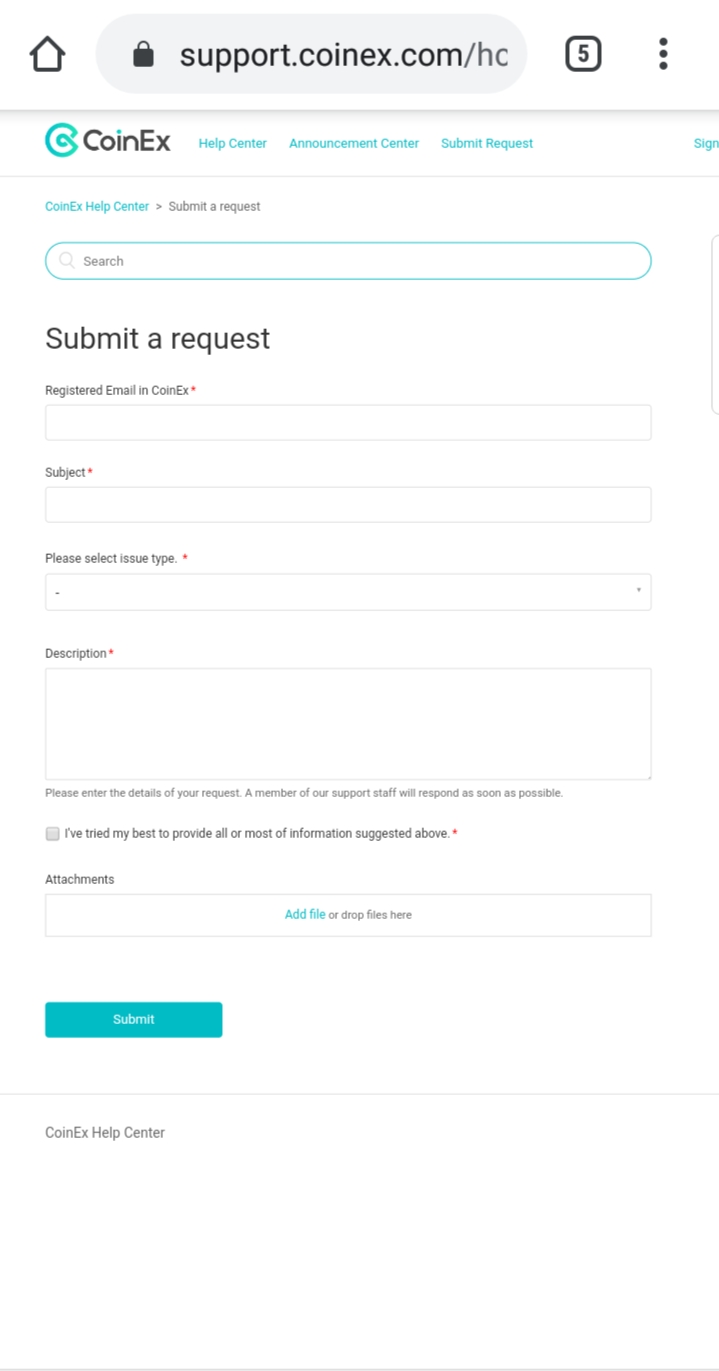 To all CoinEx users, if you encounter any issue relating to the Exchange, you can create a ticket and your issue will be resolved by the support team.