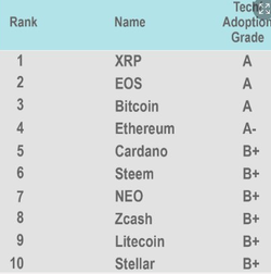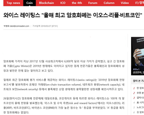 리플, 이오스, 비트코인이 가장 높게
