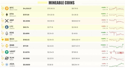 채굴형 암호화폐가 시가총액의 70%를