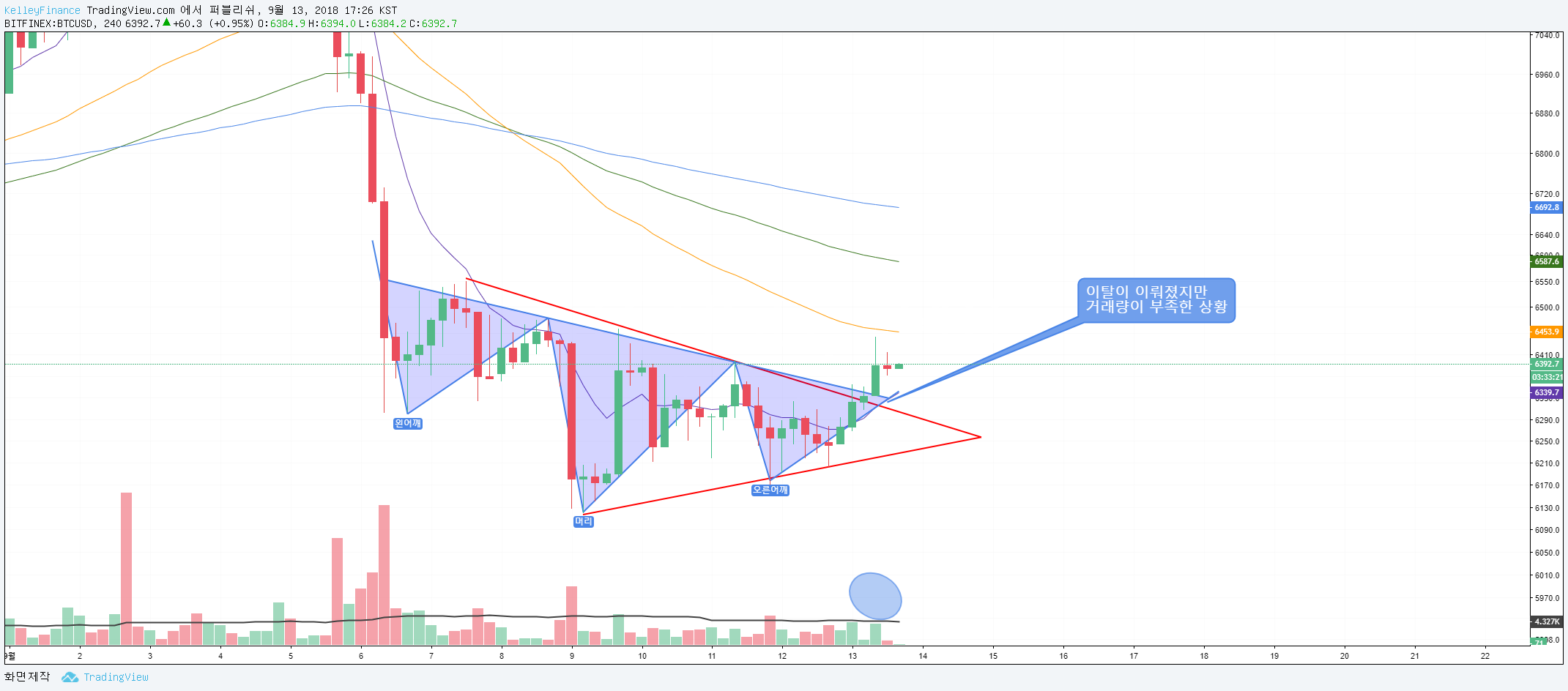 역헤드엔 숄더로 해석 해볼수 있는 상황이지만 거래량이 아쉽습니다.