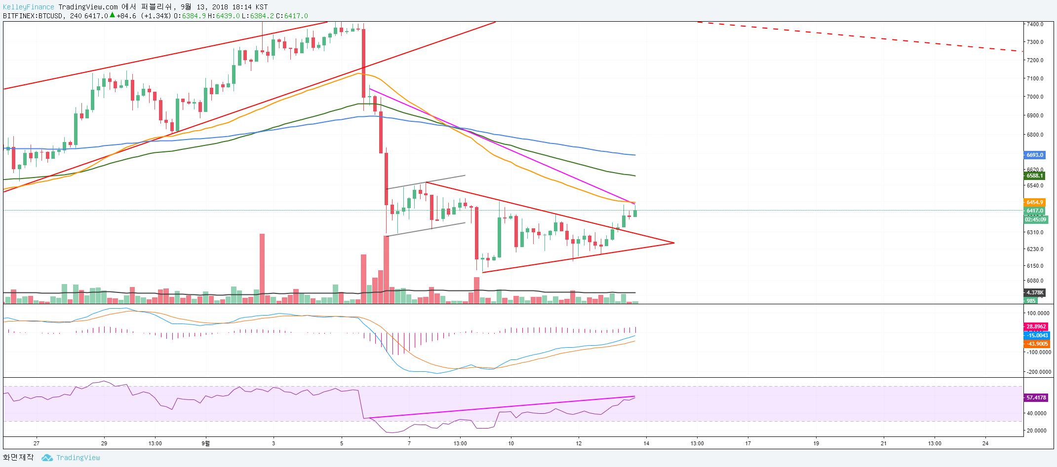 - 하락이탈후 또다시 대칭 삼각형 수렴진행. (추가 하락 예측)