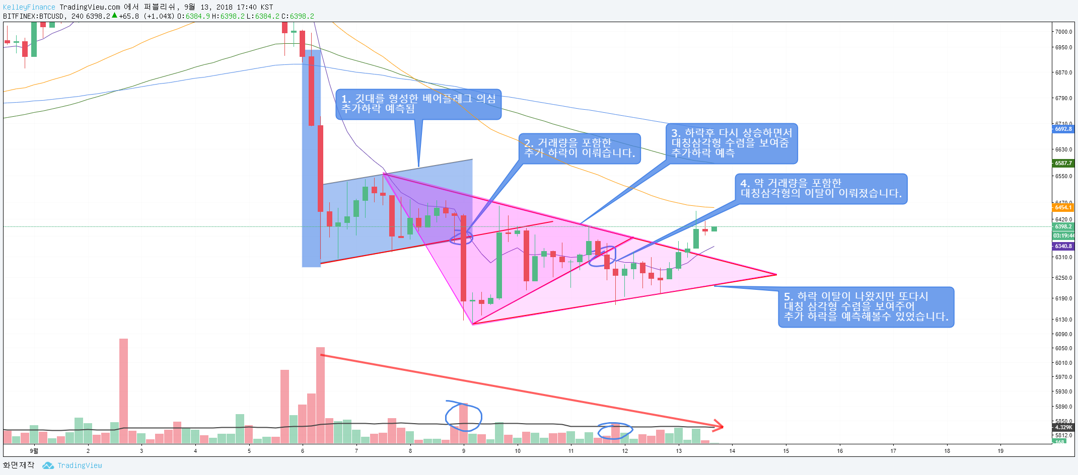 - 거래량을 포함한 추가 하락이 있어 베어플레그 완성.