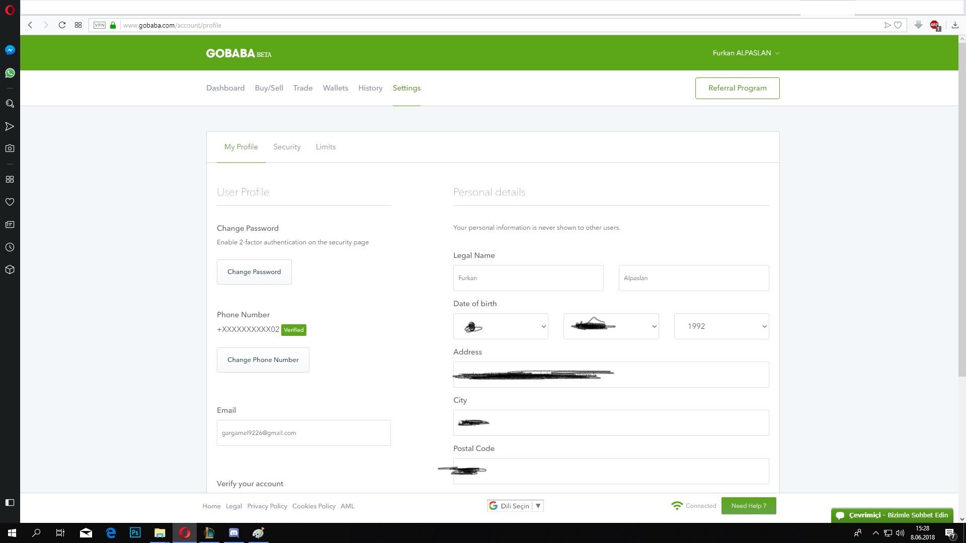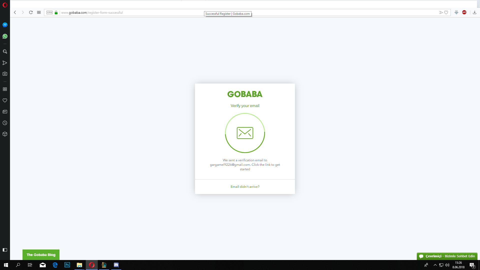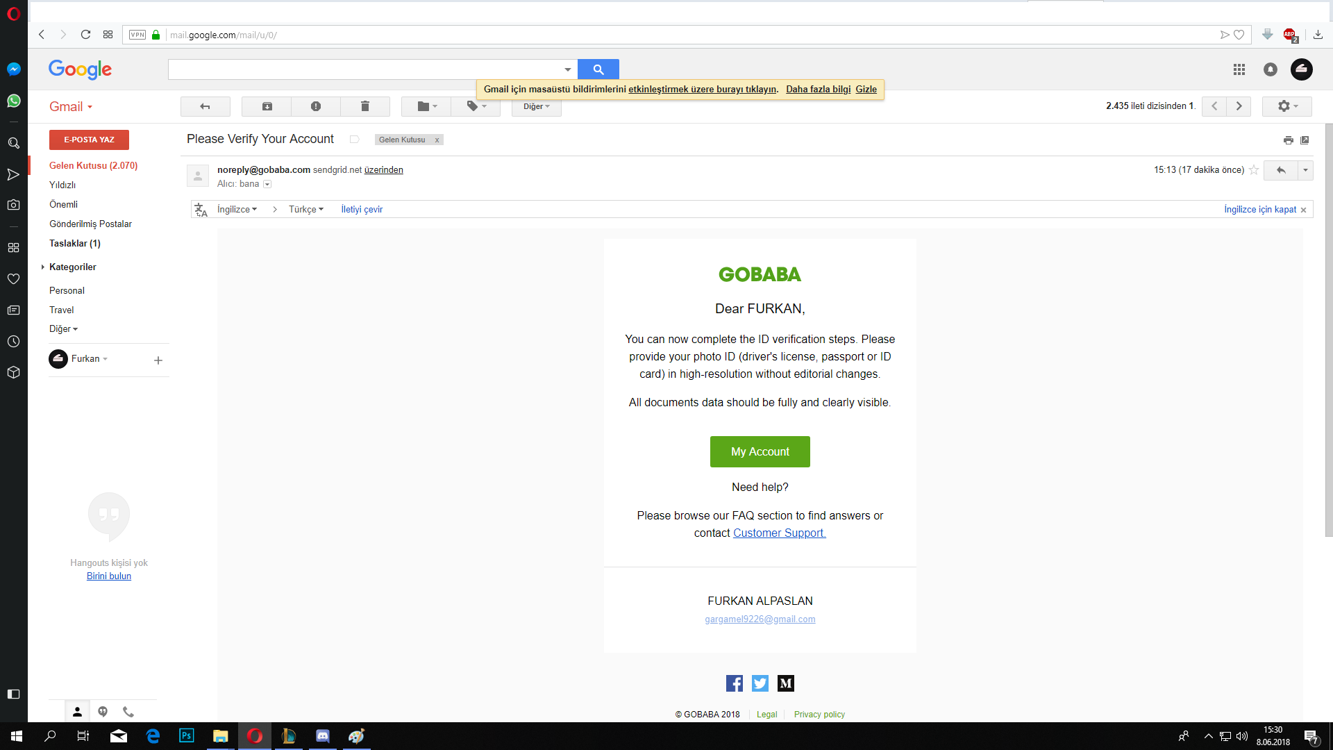 Kayıt olduğum email: gargamel9226@gmail.com