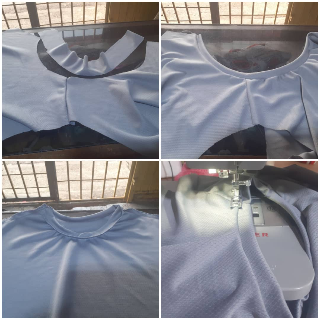 uniendo las partesLuego añadí las elásticas en la parte del cuello y en la punta de las mangas para darle un poco de seriedad a la prenda de vestir 😊. Finalmente terminé de unir todas las partes con la máquina de coser para obtener el resultado final.