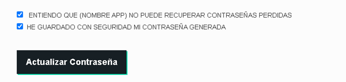 Es decir, el sistema les recuerda que no se pueden recuperar las claves, y que debe guardar esta contraseña nueva, porque es la que les permitirá posteriormente obtener el nuevo PDF con todas las claves. Una vez que tengan estos pasos listos, deben dar clic en ACTUALIZAR CONTRASEÑA.