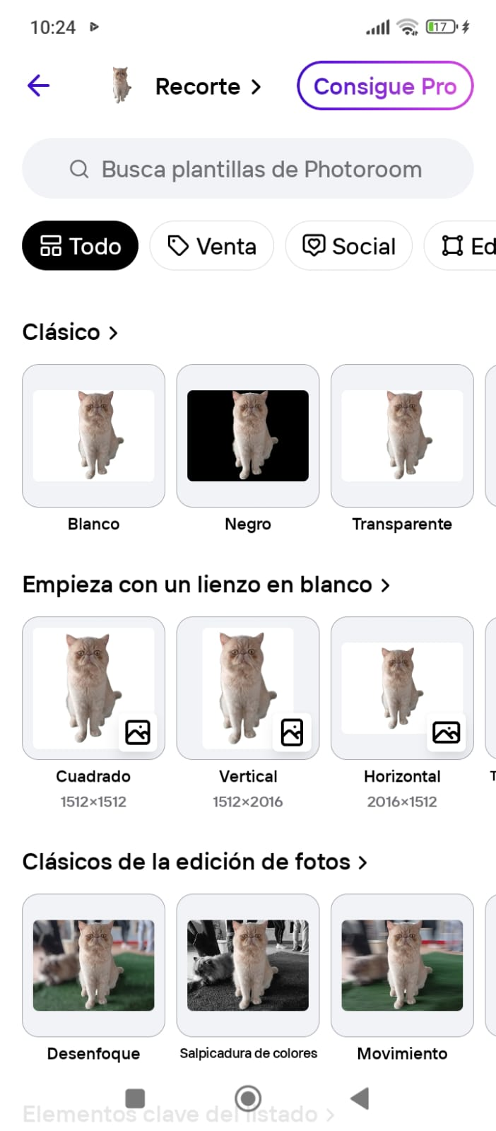 - Primero seleccioné "empezar desde foto", escoguí la foto de la galería, la aplicación le quita el fondo.