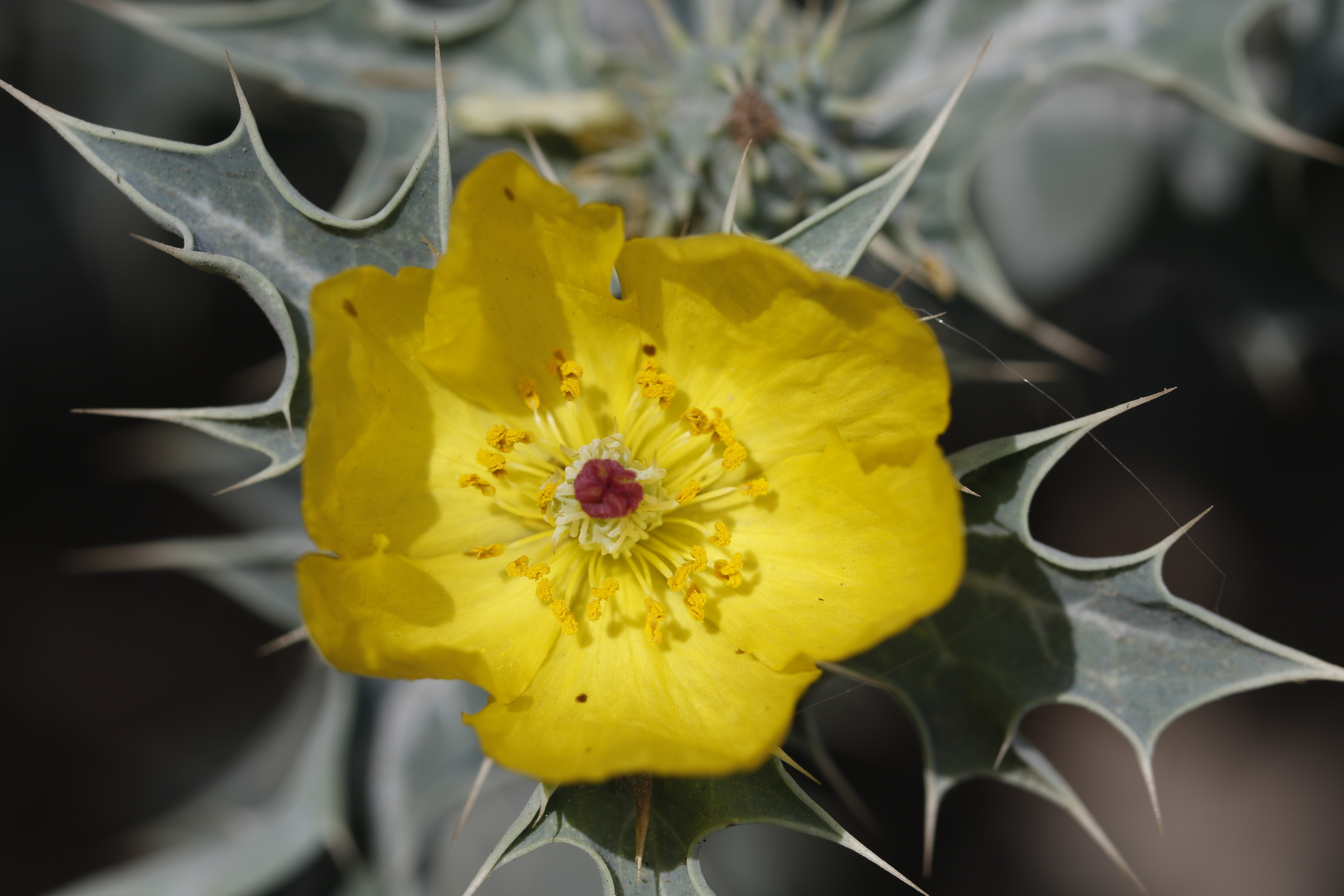 Awesome photography , this flower is beautiful and it's leaves are very dangerous looking .