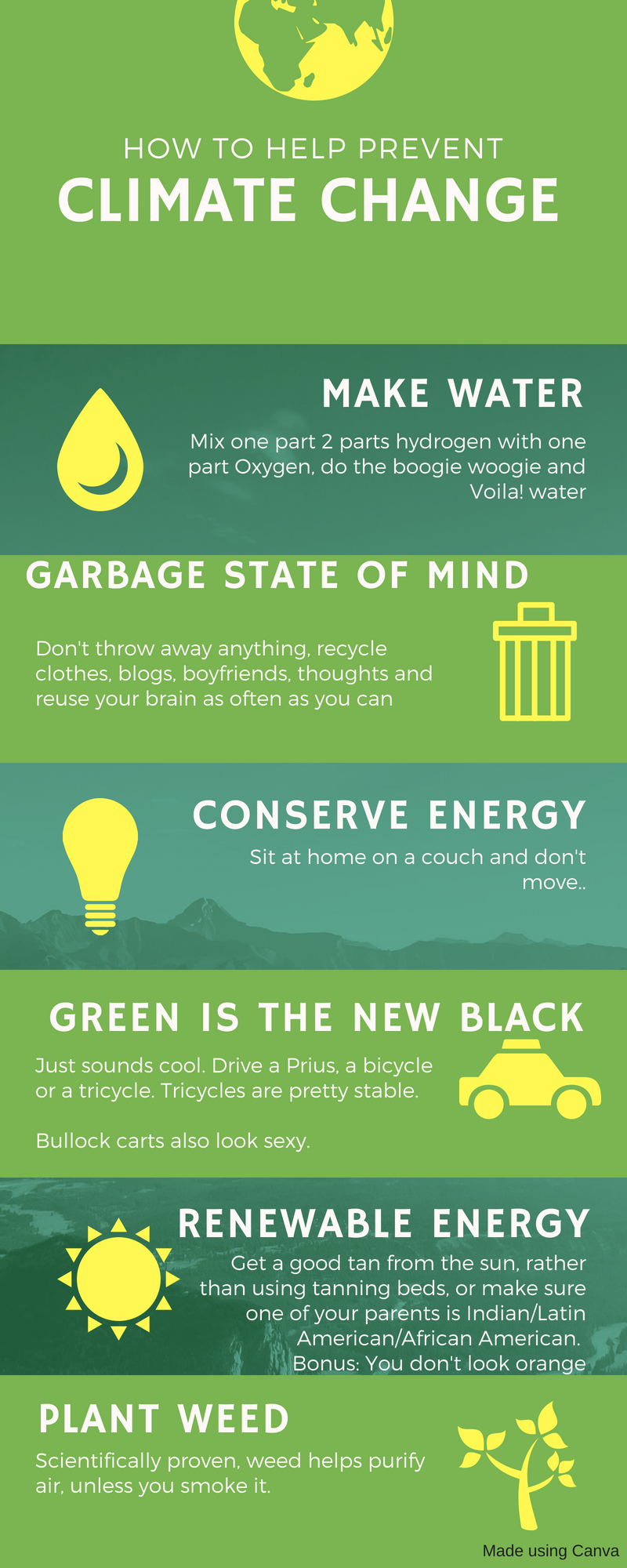 Change is the only constant thing anyways, so let the climate change. I can't afford to start reusing my brain. too much work