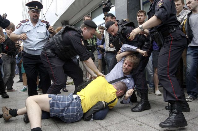 calle, la policía tratando de separarlos, un consejero haciéndolos