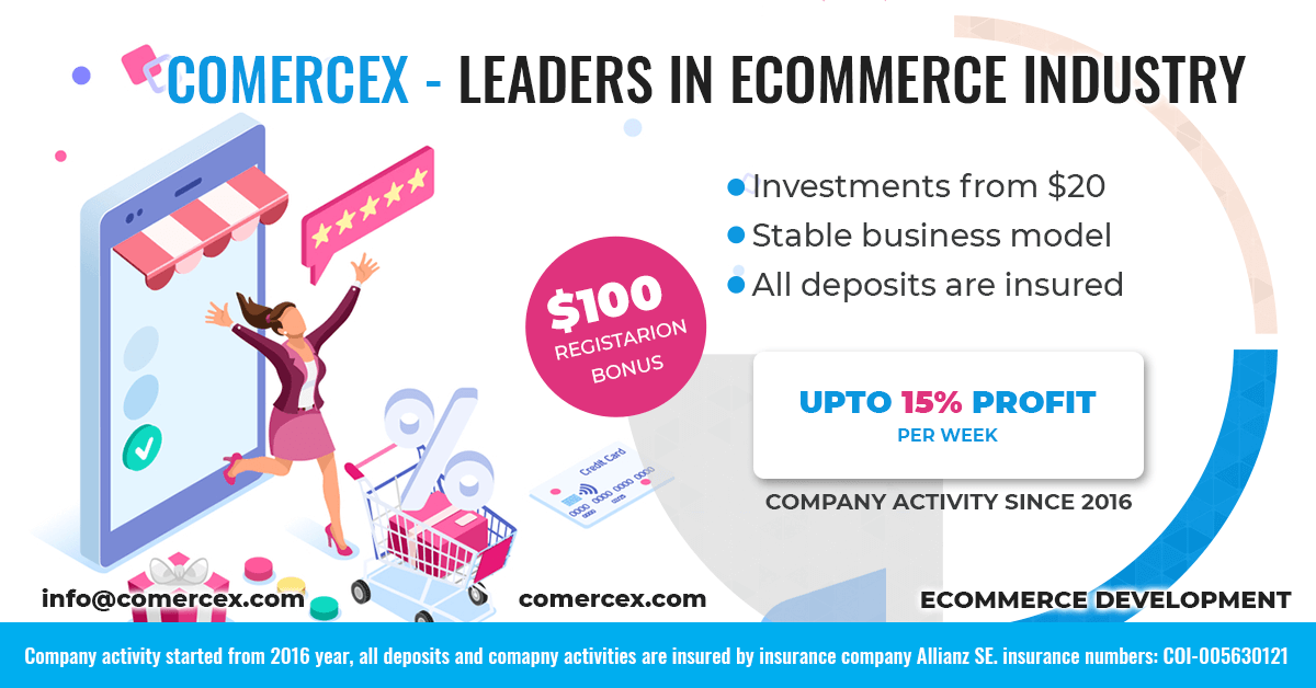Comercex company was founded in 1 July, 2019 in London, United Kingdom and it's online for more than 2 months. This company provides you the good opportunity to earn money online by doing investment in different sectors like dropshipping, private labelling etc. And the thing is, it provides $100 USD active investment bonus for all the members who get involved in comercex. You can also increase your investment amount by participating in bounty program by just doing simple social media tasks and also earn by inviting your friends in comercex company. It provides 15% return of your investment every week. This platform is very friendly and you can directly interact with the founder and members of the comercex team directly from the facebook group. You can withdraw your payments via bitcoin, ethereum, payeer and perfect money after completing its minimal withdraw limit. You shouldn't have to invest a huge amount of money in this platform, you can just deposit $20 USD and can withdraw your money directly into your account. So there wouldn't be the risk of investing and the company is very trusted and providing good opportunity for people who want to earn some passive income online.