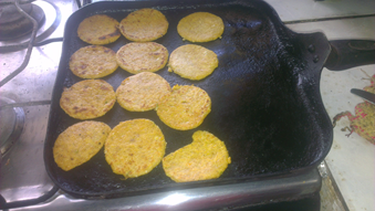 Ya teniendo las tortillas cortadas lo colocamos en el horno o en un budare que es lo que podemos apreciar en la foto temperatura más o menos alta sacar las tortillas cuando estén crujientes.