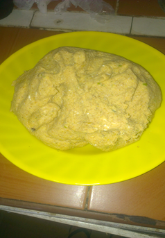 Al día siguiente ya podríamos comenzar, colocas la masa de maíz y la harina de trigo en un bol, en una licuadora colocas el comino, el ají picante. Luego de haber licuado todo lo incorporas en la masa y empiezas a masar hasta obtener una masa firme.