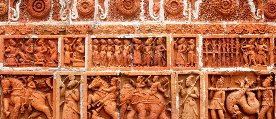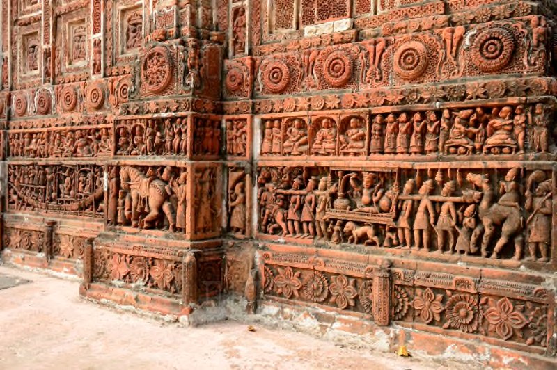 Nestled in the magnificent countryside, the vault-roofed Rouge Castle of Kantanagar Temple, locally known as Kantji, is a stunning piece of religious art and one of the most impressive Hindu monuments in Bangladesh.The folk artists who lent their masterful touches to the temple were superb storytellers. In one panel, a demon is depicted swallowing monkeys, which promptly reappear from his ear. Other scenes are more domestic, such as a wife massaging her husband’s legs and a lady combing lice from another woman's hair. Amorous scenes are often placed in obscure corners.