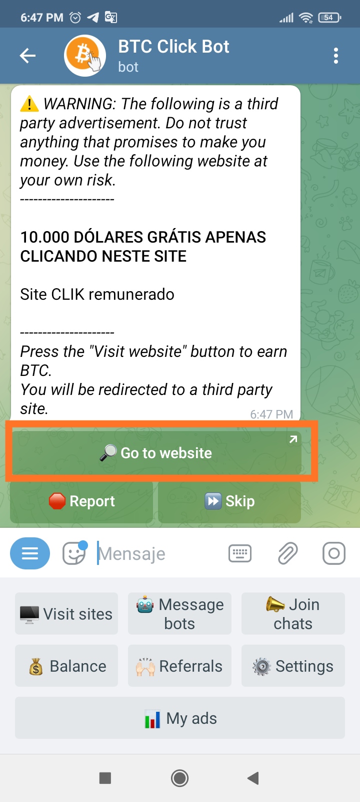 II Nos aparecera un anuncio donde vamos a darle a "Go to Website", para que asi nos cargue la pag que nos va a generar ingresos, cuando nos llegue la notificacion salimos de la pag y ya nos habran hecho el pago.