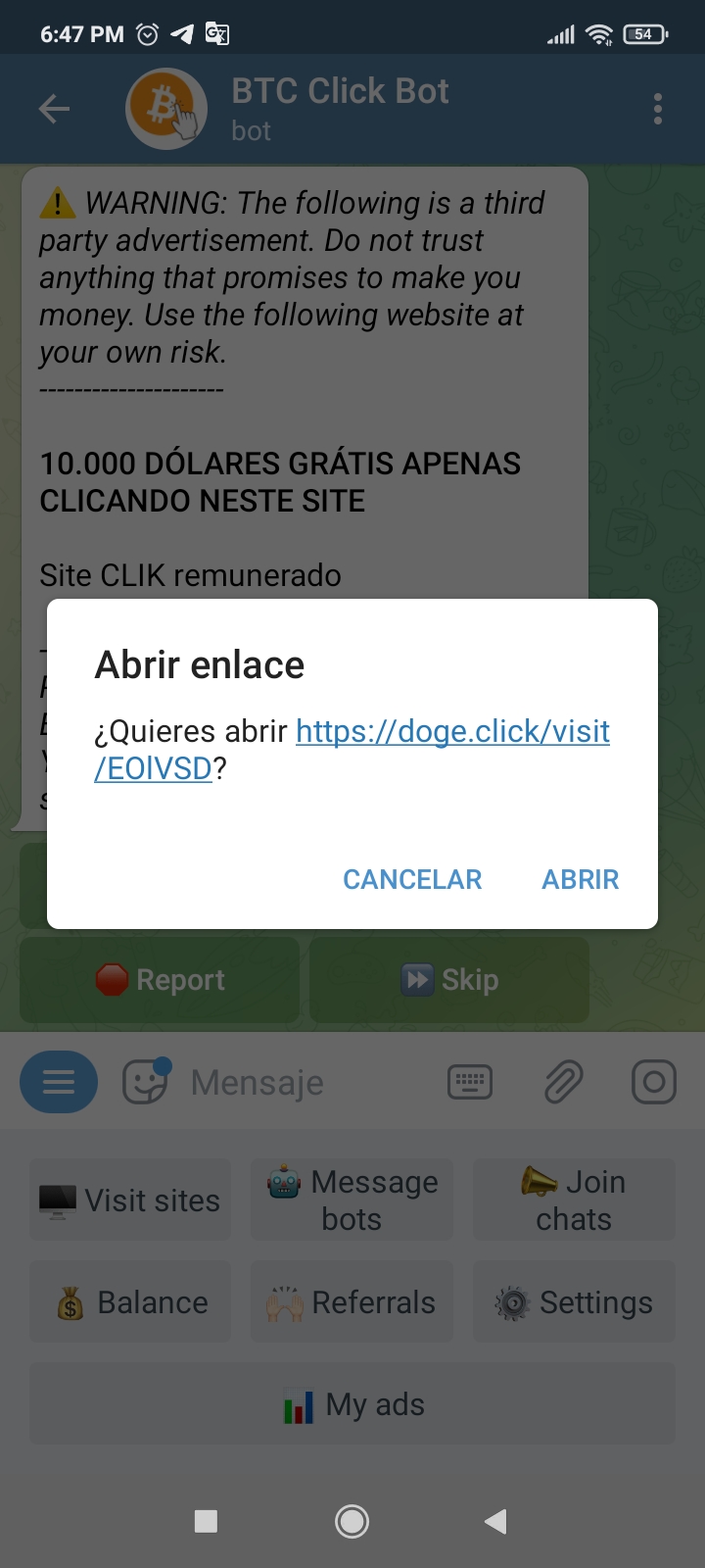 Para finalizar y como paso muy importante antes de hacer esto debes descargar un vpn que al igual que telegram consiguen en play story, no pide ningun registro el sirve para poder cargar las paginas que nos manda el bot, ya que deben ser extrangeras.