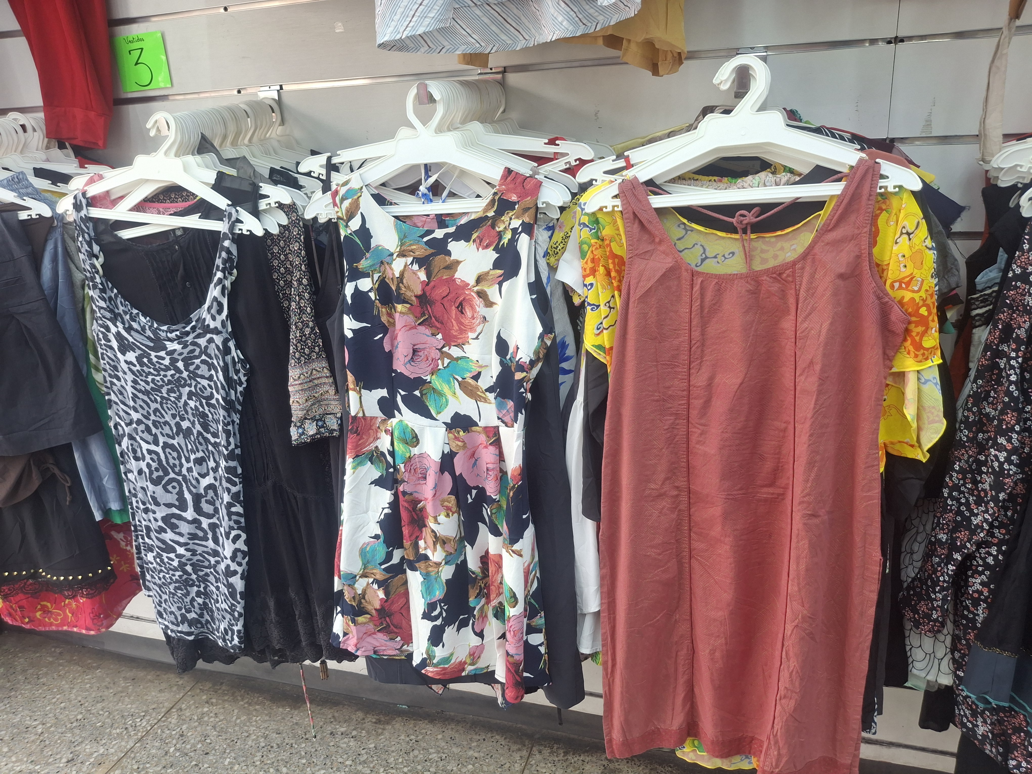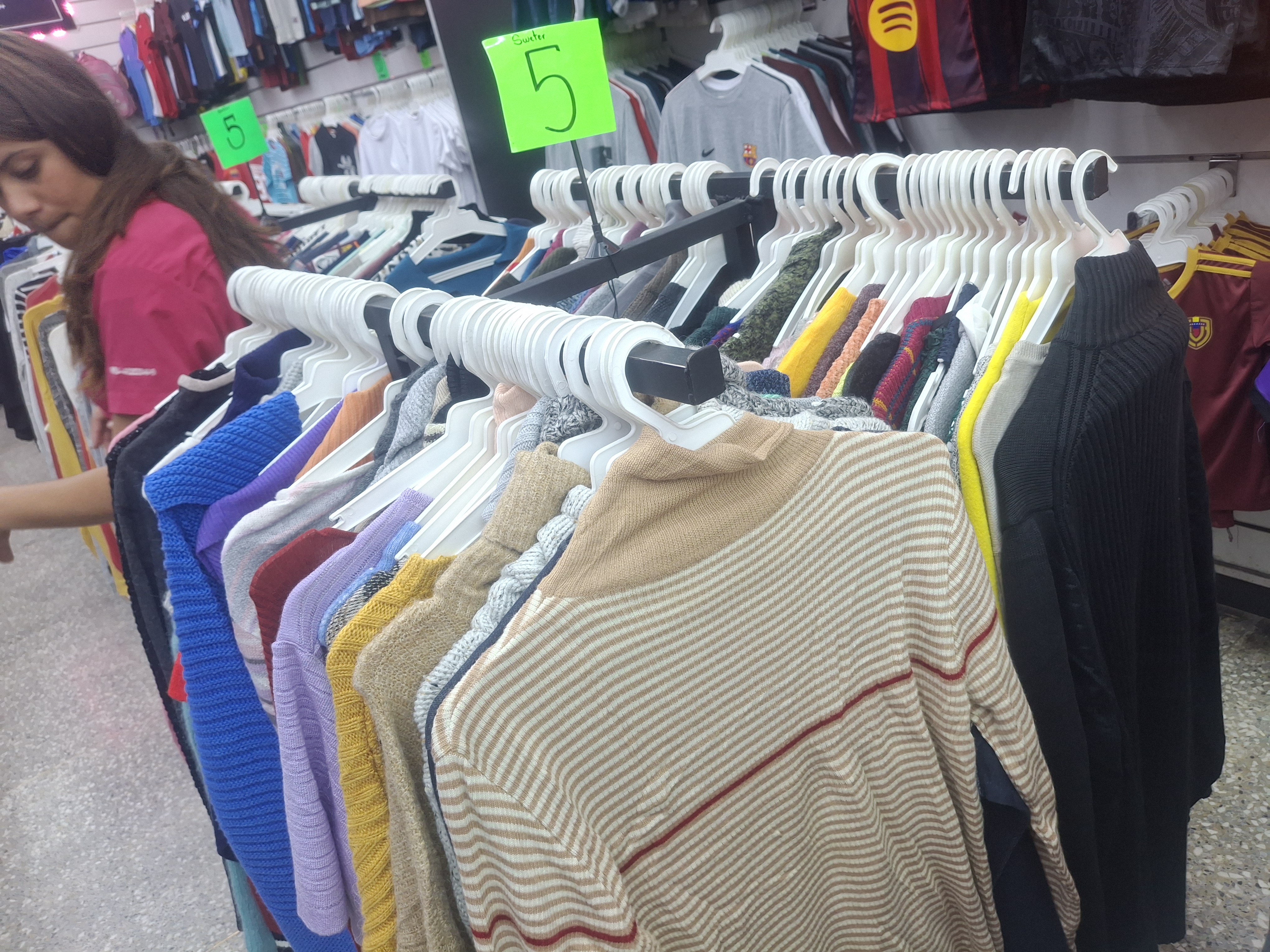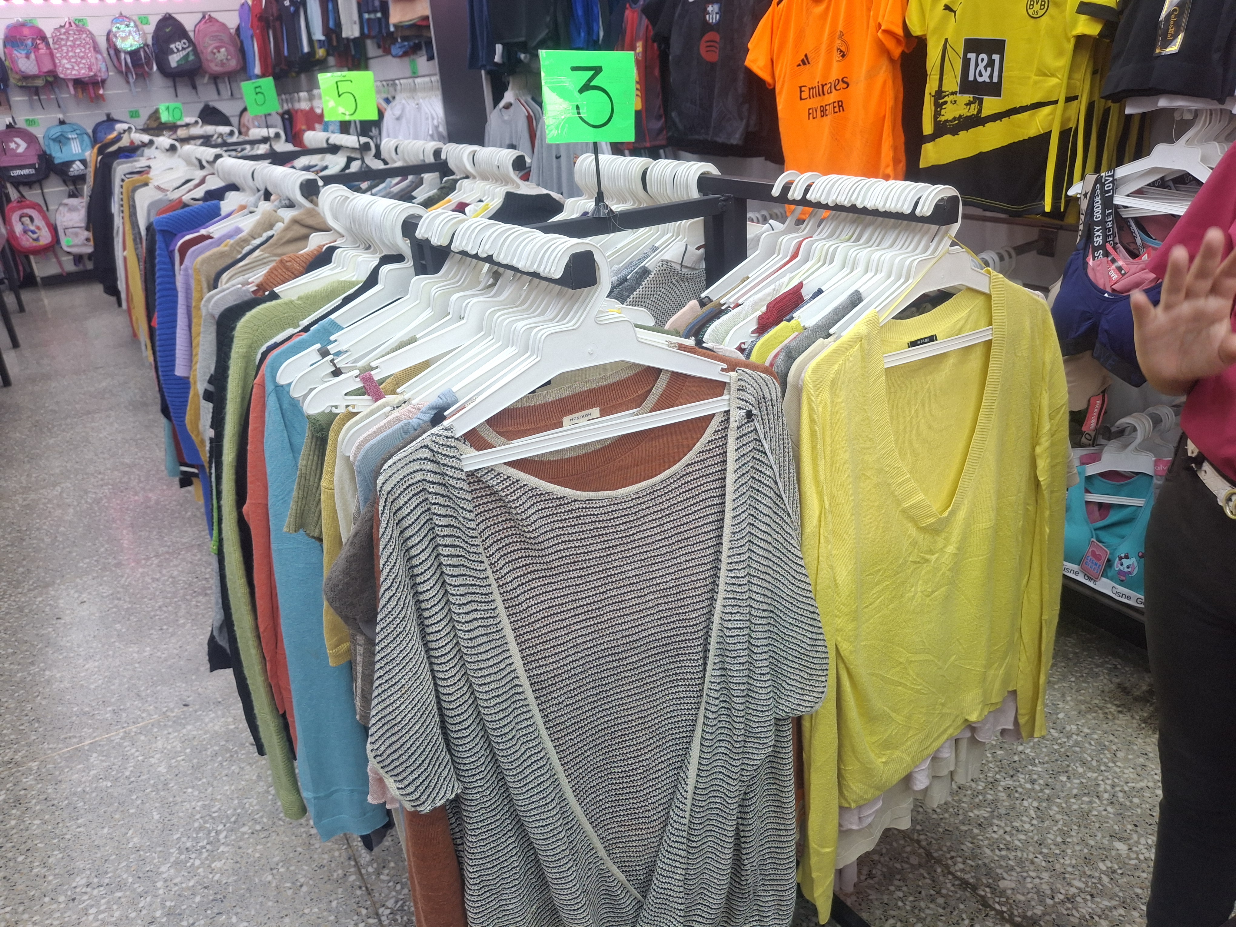 Tambien habían pantalones bajos, de vestir, bota campana, bragas de jen y mucho más solo debes buscar en el mesón, además de eso encuentras short de jean, licras, short de vestir, short en tela de mono, al igual que sueter de los que vi muchos modelos lindos y algunos tejidos que me llamaron la atención, aparte de franelas de damas, caballeros, niños y niñas.