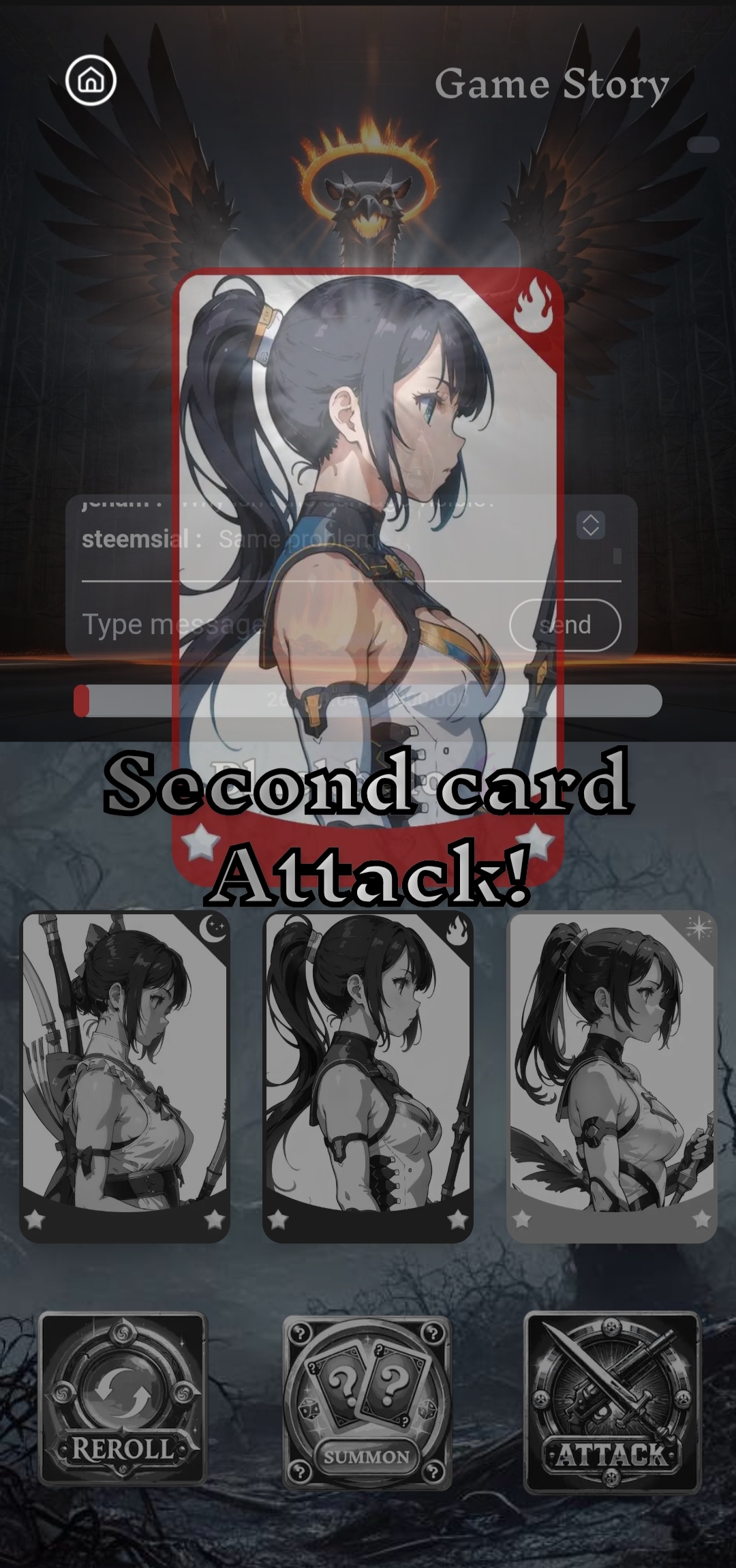 Entré al juego y primero recolecté tres cartas, con las que ataqué en las fases. Después, recolecté tres canciones más de esta forma, realizando un total de tres ataques cortantes. Como puedo atacar tres veces, puedo realizar tres cortes. El poder de cada carta era muy alto, y con estas poderosas cartas, le causé mucho daño al monstruo.